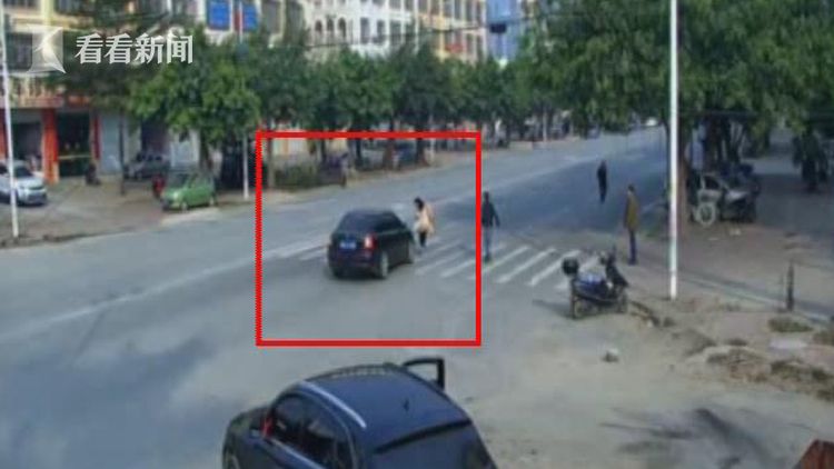 从监控视频可以看到,当时,女子正被一群男子追打,一辆黑色汽车驶来,避让不及,将女子撞倒。