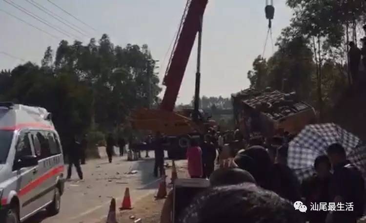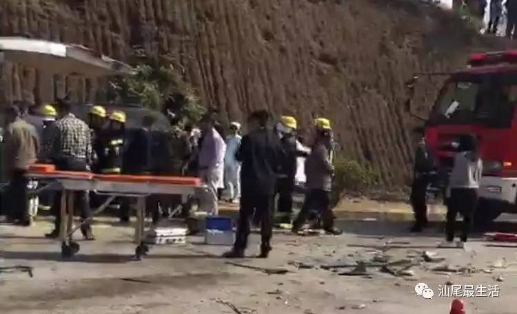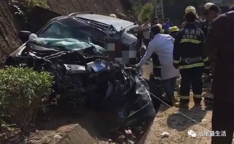 网友爆料,2017年2月12日下午13时左右,在陆河县环城东路幸福山庄附近发生一起惨烈车祸,一辆黑色私家车与一辆大巴相撞,致私家车车头严重损毁变形,大巴发生翻车,两车人员被困。