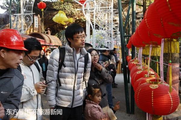 “唐宋风流称独步,五万盏灯一火树。”11日晚7时多,鱼灯、龙灯、宫灯、花灯都亮了,七彩的光晖让园区更显古朴,更具古韵,寄托着年年有余、鸡年吉祥的美好寓意。整个长鹿灯火辉煌,喜气洋洋,如同一幅现代清明上河图。赏花灯、猜灯谜的游客络绎不绝。