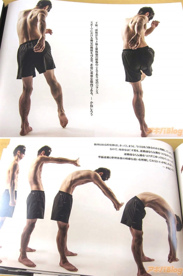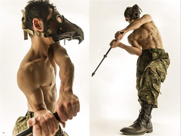 写真集中请来了拥有标准自然肌肉体型的男模进行一些常见动作示范。比如出拳、挥动物体以及踢腿等等。