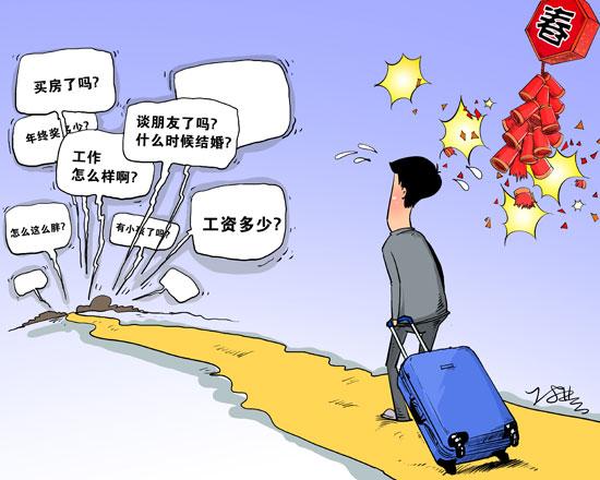 “可能长辈们也并非有意要‘逼’什么,更多时候,只是大家坐在一起没话聊,只好问问结婚、谈恋爱这些‘通用话题’。”来自北京的公务员蔡振铎(化名)说。