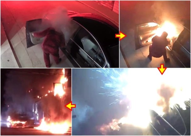 惊险!安徽一男子一打开车门火球扑面而来,险 安徽宿州前晚(2月10日)发生惊人一幕,一名男子到银行自动柜员机提款后,返回自己座驾打开车门时,竟然发现车内冒出浓烟,并迅速起火,火势甚至扩大殃及银行。消防接报赶到现场,用了近一小时才将火救熄,无人受伤。从监控画面可见,当晚(2月10日)9点左右,男子刚打开车门,车内就浓烟弥漫。男子探头入车厢察看原因,却不料方向盘下方突然冒出火球,男子随即退后。在短短5分钟内,整辆汽车均被火焰吞噬;汽车起火后,旁边的银行也迅速受到猛烈火势波及。所幸没造成人员伤亡! 上一篇 凌晨房子失火 猫咪救了全家人 上一篇 小学生作文告白李易峰,老师评语亮了