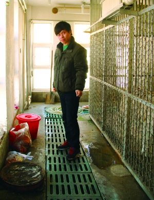 走进白虎的饲养区,一股大型肉食动物的腥臭味扑面而来。白虎馆是全封的玻璃馆,玻璃馆的后侧是细网格的铁笼,一大一小两只白虎就在笼中。饲养员高永礼是个有着近10年工作经验的老职工了,陈明则是刚参加工作两年的年轻人。