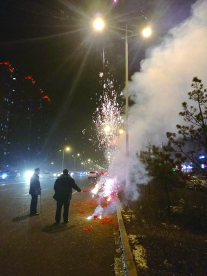 记者注意到,从2月11日18时开始,不少居民开始燃放烟花爆竹,小区里、花丛中、马路两边随处可见,伴随着声响,烟花升空,不少私家车的警报器受扰发出响声。鞭炮声、烟花声、汽车警报声同时响起,一时“热闹非常”。家住鼎盛国际的陆明生说:“过节放烟花是挺热闹,但得有度,放点儿意思一下就行了,多了不仅扰民还污染空气,一不小心还可能引发火灾。”另外,燃放烟花形成的烟雾让不少车主在路上行驶时都放缓了车速。“今天的能见度低,根本不敢快跑。”滴滴车主孙洋说。