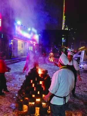 2月11日17时许,在万豪长隆湾小区北门两边的饭店门前,记者看到,四五个旺火堆正在熊熊燃烧,浓烟不断冒出,火星四处乱飞,风一刮,火苗随着风向来回摆动,火势逐渐增大。随后,记者又来到五里营小区,该小区附近有多个饭店和商家,不少都点起旺火,整条街烟雾缭绕,路过此处的市民纷纷捂着鼻子快速通过。另外,在锡林郭勒南路、呼伦贝尔南路、昭乌达路、昭君路等人员密集和商铺较多的街道,也随处可见商家点的旺火,其中大部分旺火都在路边,点燃后便没有人管理。23时许,记者看到万豪长隆湾小区北门附近饭店门前的旺火仍在燃烧,时而有火星冒出,但周围空无一人,周边停放的车辆一辆挨着一辆,安全问题令人担忧。