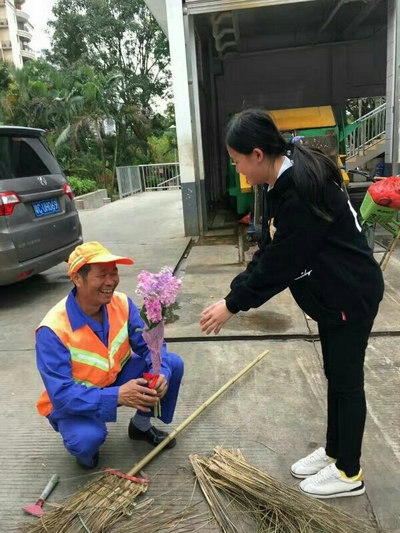 据悉,一年来,杨女士已先后给市人民医院、中大五院、福利院等地方免费送去了鲜花。昨天的活动杨女士在微信朋友圈里召集志愿者,没想到一下子就有12位大小志愿者报名,他们兵分四路,分别将90束紫罗兰、香雪兰送给在街头劳动的环卫工人,收到鲜花的环卫工人都表示非常惊喜。在春寒料峭的街头突然收到陌生人送来的鲜花,这种温暖和惊喜让人粲然一笑,心头暖暖的。