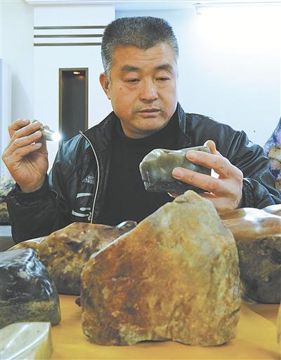 好的石头还需好雕工。张宝君专门请雕刻师雕刻了古兽等多方印石,藏在橱柜里。每方印石,光雕刻工钱就需2000多元。这几年,张宝君花了60多万元用以收购原石及支付加工费。“看到好的石头,非常喜欢,心都会热。”张宝君对大松石近乎痴迷。
