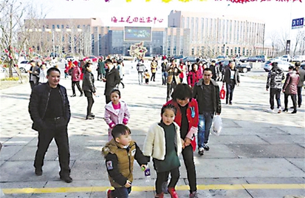 今年春节,一群群孩子由家长陪同,前往上虞杭州湾海上花田景区,观赏“稻草人风车节”。