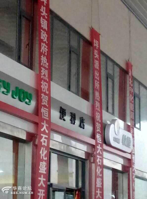 该值班民警还表示,2月7日上午已对“恒大石化”加油站的负责人进行了口头警告,在接受民警教育之后,该名负责人也意识到自己的错误,把所有条幅都撤了下来,“从挂上条幅到撤下,不到两天时间。”