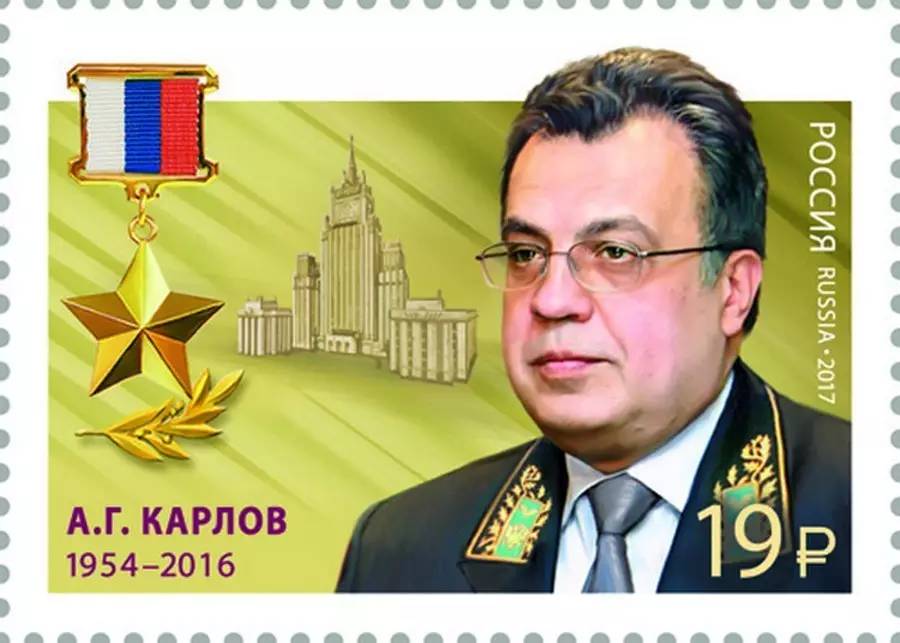 2.俄罗斯庆祝“外交工作者日”,遭枪击身亡的俄罗斯驻土耳其大使安德烈·卡尔洛夫的纪念邮票于同一天发行。