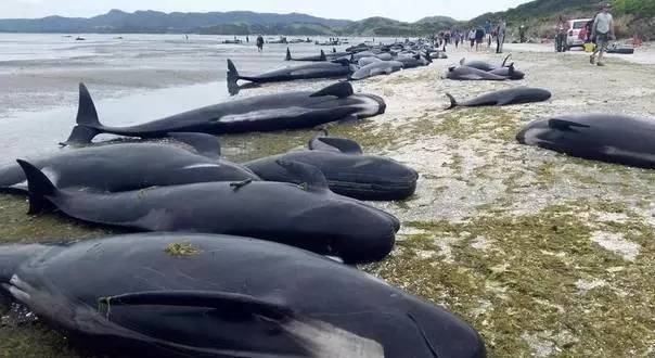 9.超过400头领航鲸在新西兰南岛西北部搁浅,其中大约300头领航鲸被证实不幸死亡。新西兰环境保护机构和志愿者正在努力解救幸存的领航鲸。