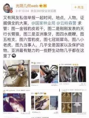 2.有网友私信举报,云南德宏傣族景颇族自治州有人在“朋友圈”贩卖野生动物,公安机关接报后已将涉案嫌疑人抓获。
