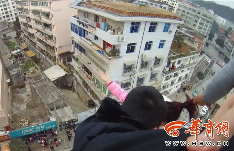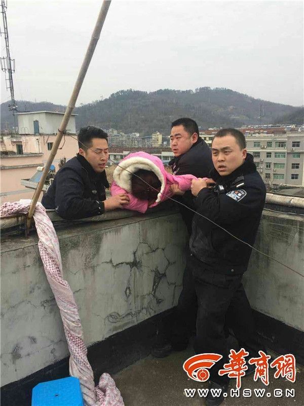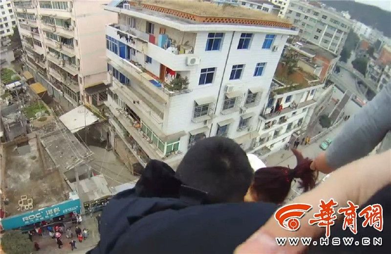 陕西石泉县城30多岁女子因家庭矛盾翻出7楼楼顶护栏,民警及时赶到现场,众人合力将她救下,“如果不是她丈夫再坚持了几秒,或是我们晚到几秒的话,就可能救不上来”