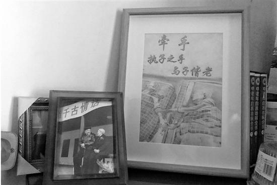 这张画像,和两个老人曾经的合照放在一起,丈夫揽着妻子,神情亲昵又自然。